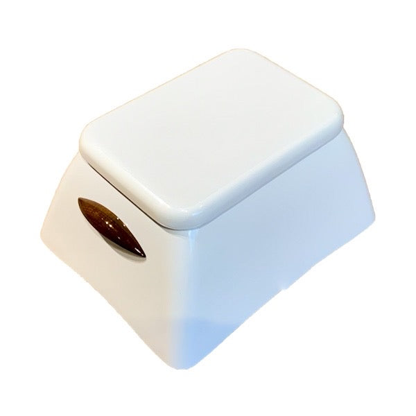 Fiberglass step box for sportfish boats with opening lid and teak handles.